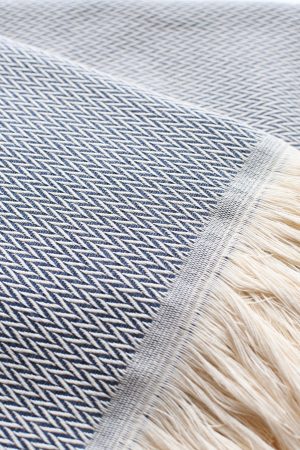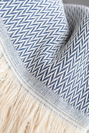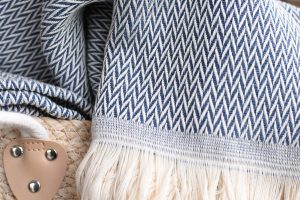 Nous tissons ce plaid chevron bleu nuit en France dans le Tarn, avec une chaîne en coton naturel écru et une trame en laine de bleu nuit qualité, recyclée aux Filatures du Parc à Brassac (81). Le tissage chevron est parfait si vous recherchez un plaid souple et moelleux. Avec sa couleur actuelle, ses franges écru et son style scandinave, ce modèle s’accorde parfaitement dans toutes les pièces de votre maison et devient un élément de décoration raffiné