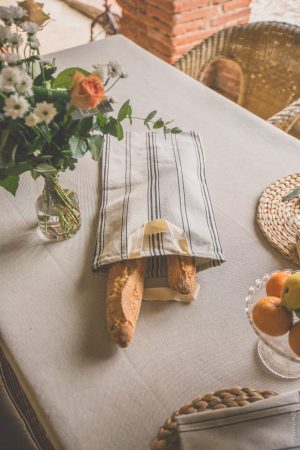 Nos sacs à pain en toile se déclinent dans plusieurs couleurs et motifs: Sac à pain à carreaux, sac à pain à rayure, sac à pain uni.